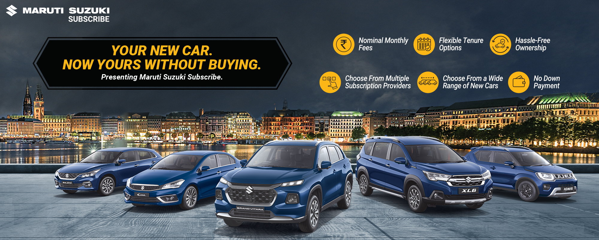 Maruti Suzuki Subscribe enables all customers to enjoy driving their preferred Maruti Suzuki cars without having to deal with all the financial responsibilities that come with owning a car.All you need to do is opt for a monthly subscription plan at a fixed monthly fee, which includes the routine maintenance and insurance costs, and choose a flexible tenure. At Kalayni Motors Pvt Ltd in, Egmore, Chennai, all Hatchback, Sedan, SUV, the MUV models line-up includes Baleno, Invicto, EVitara, Jimny, Ciaz, Ignis, Fronx, Grand Vitara, XL6. Here, you will enjoy Maruti Suzuki Subscribe benefits such as: